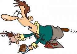 stumble - Trip or momentarily lose one's balance; almost fall