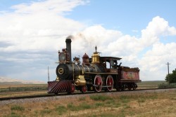 chug - (of a vehicle or boat) To move slowly with engine making regular muffled explosive sounds