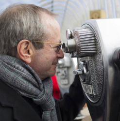 gaze - Look steadily and intently, especially in admiration, surprise, or thought