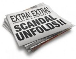 scandal - An event that is considered so wrong that it shocks people