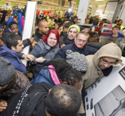 shoo - To make a person or animal go away by making noices and waving one's arms at them.